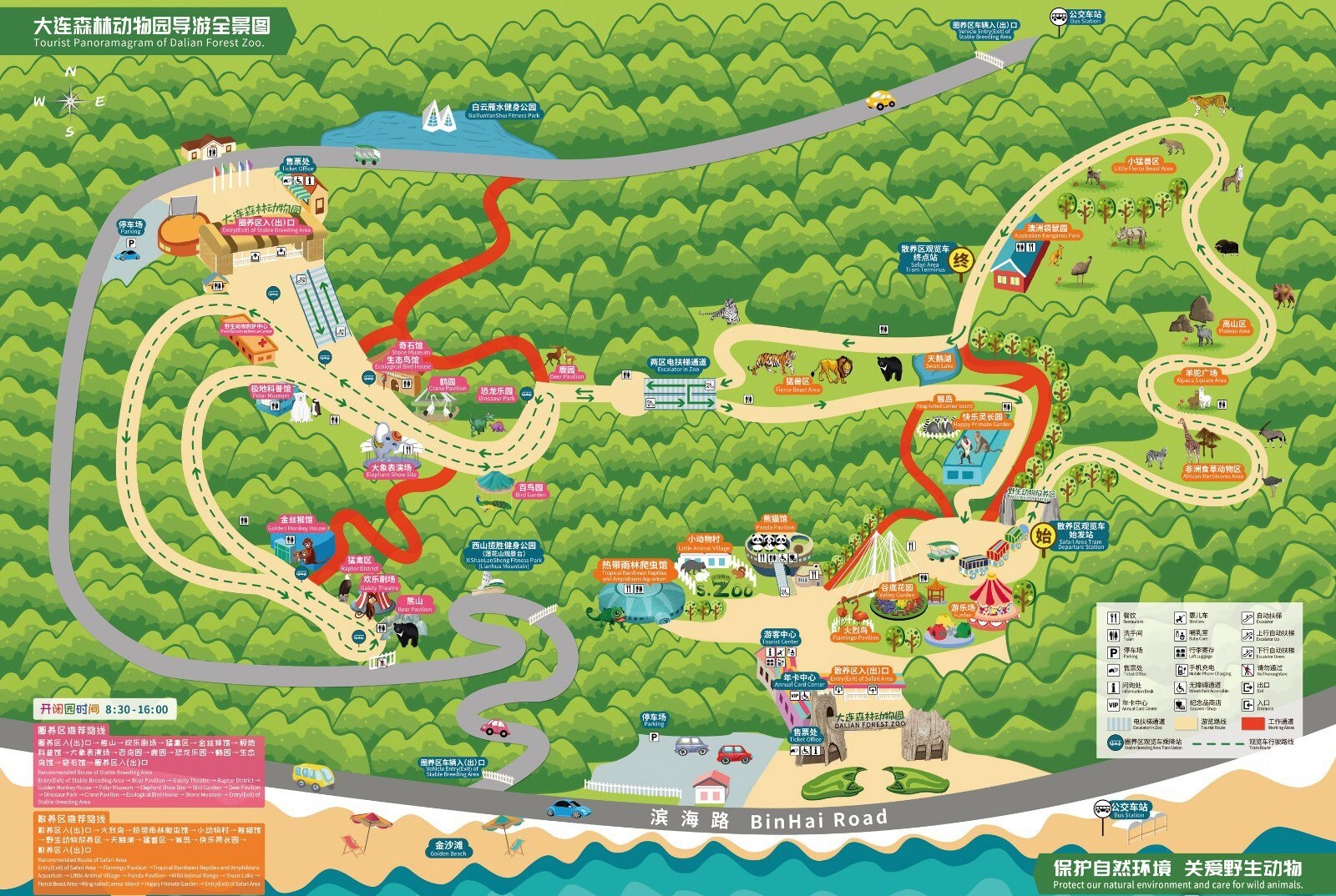 ✔️Тропический лес ✔️ Маленькая деревня животных ✔️ Дома панд ✔️ Африканская травоядная зона (зебры, жирафы, яки, носороги, страусы, верблюды) ✔️ Зона зверей (тигры, львы, медведи) ✔️ Лебединое озеро + Гора обезьян